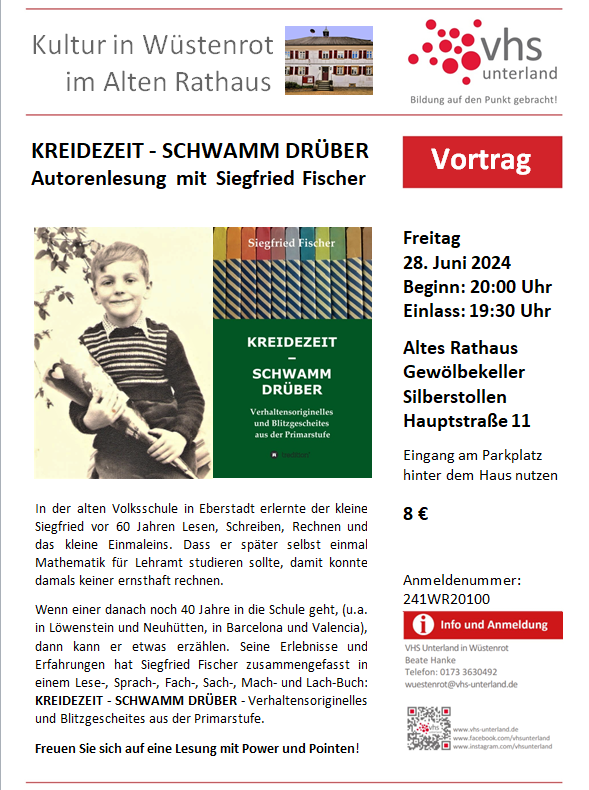 – Freitag 14. Juni 2024 im alten Rathaus in Wüstenrot (VHS Unterland)